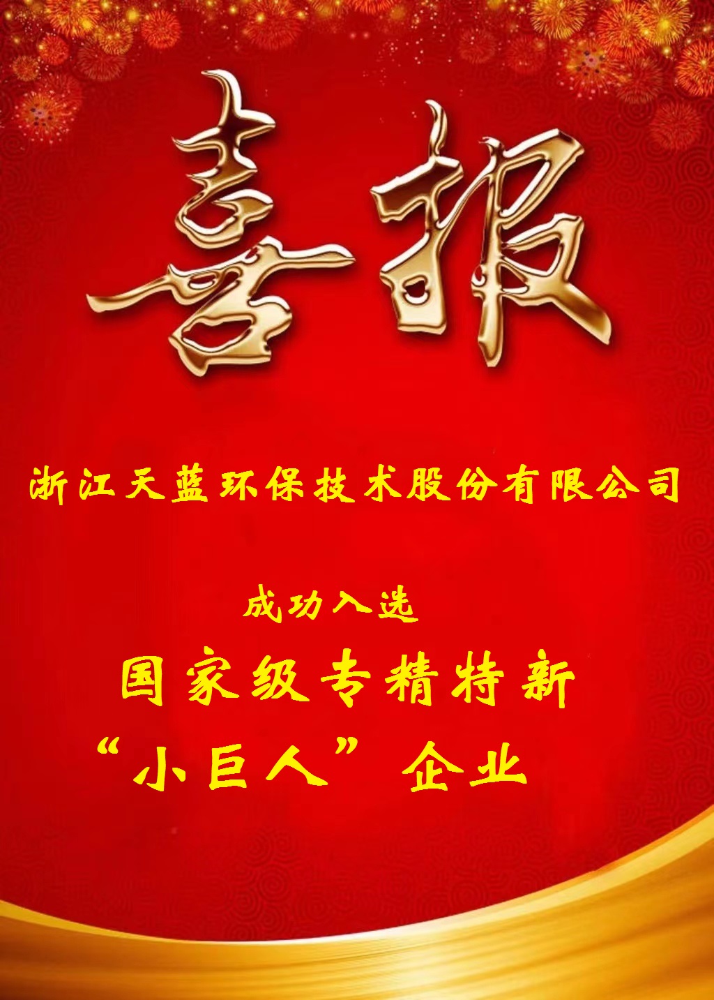 近日,浙江省經濟和信息化廳發(fā)布了《關于浙江省第四批專精特新“小巨人”企業(yè)和第一批專精特新“小巨人”復核通過企業(yè)名單的公示》,天藍環(huán)保憑借在大氣污染治理領域的技術創(chuàng)新綜合實力和市場占有率,成功入選國家級專精特新“小巨人”企業(yè)名單。